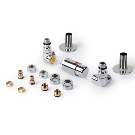Zestaw zaworów trójosiowych Vision to system kontroli temperatury, który składa się z trzech głównych elementów oraz elementów wyposażenia. Zawór trójosiowy termostat posiada trzy wyjścia, które kontrolują działanie zaworu. Zawór trójosiowy odcinający zawiera również trzy wyjścia, ale jego główny dodatek jest odcinany od wyjścia. Zawory są w cudownym kolorze czarnego matu, co doda grzejnikowi więcej estetyki i elegancji.
