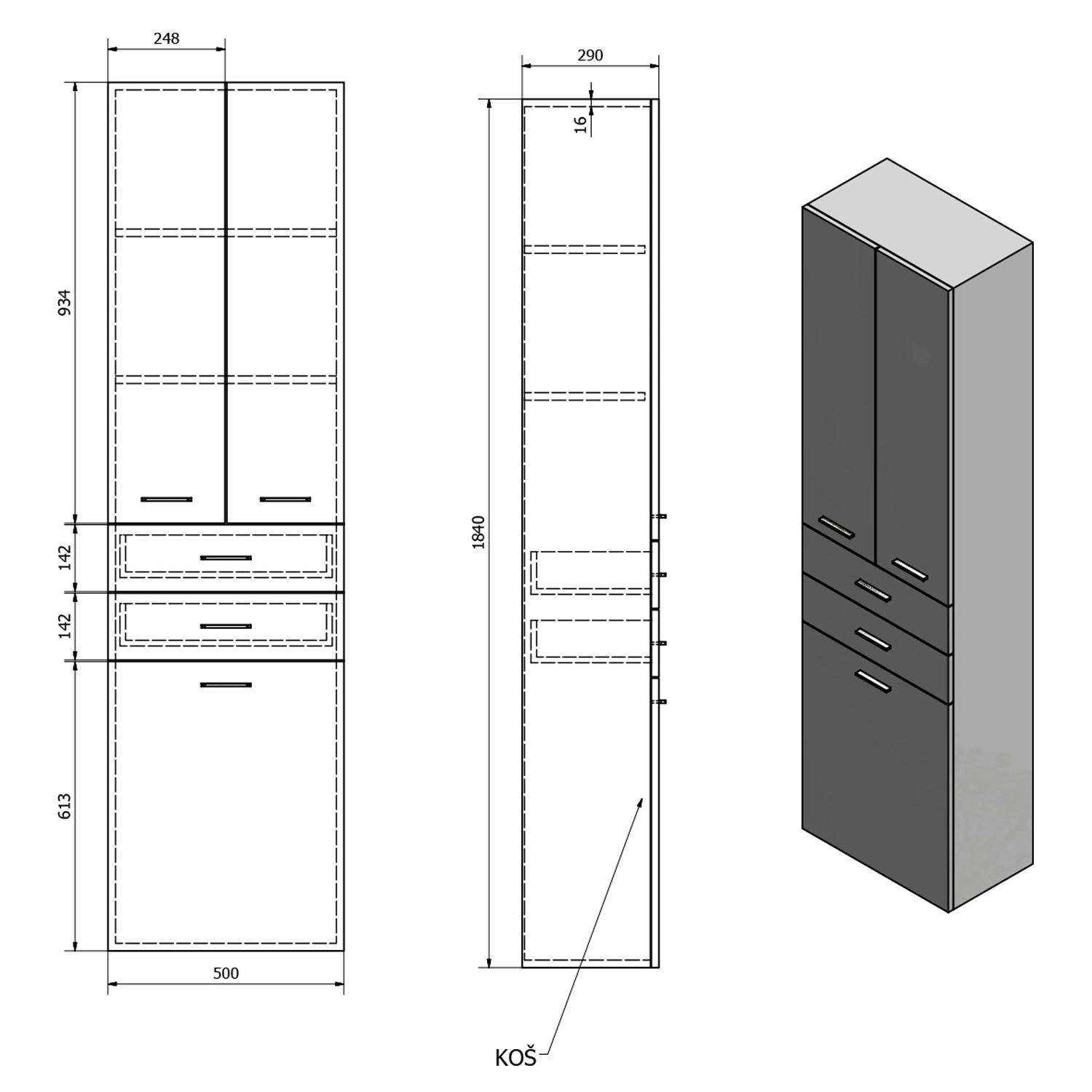 ZOJA/KERAMIA FRESH szafka wysoka z koszem, 50x184x29cm, biała