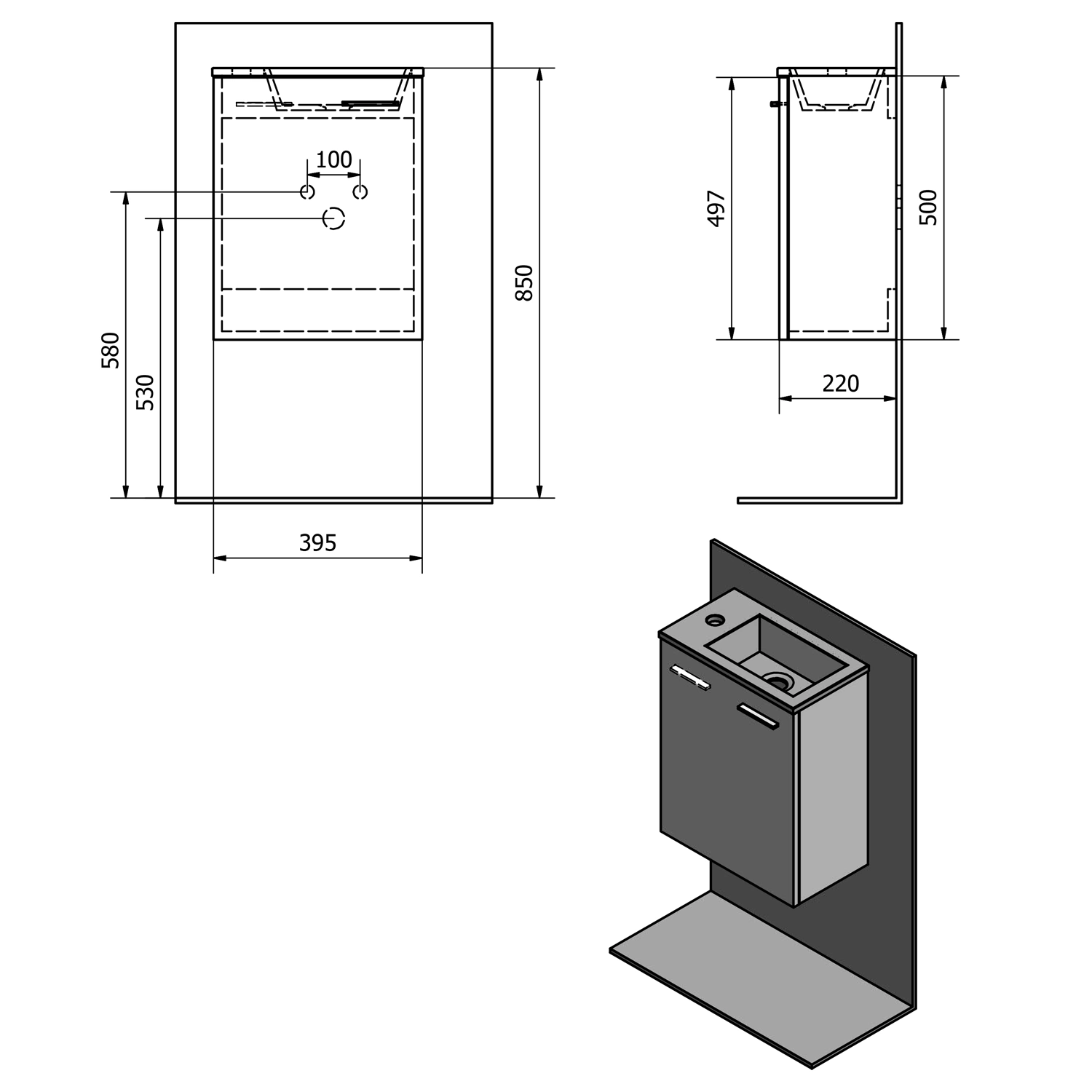 ZOJA szafka umywalkowa 39,5x50x22cm, dąb platin