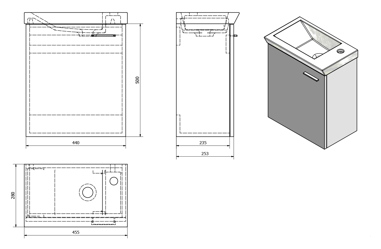 Nowoczesny design umywalek doskonale harmonizuje z prostymi krawędziami szafek, a płaskie uchwyty w chromowanym wykończeniu nadają im ponadczasowy styl. Szafki pod umywalkę można montować na zawiasach, a niektóre modele można dodatkowo wyposażyć w nóżki, co ułatwia instalację. Kolekcja dostępna jest w dwóch praktycznych wersjach wykończenia: biały połysk oraz jasny dąb platin.