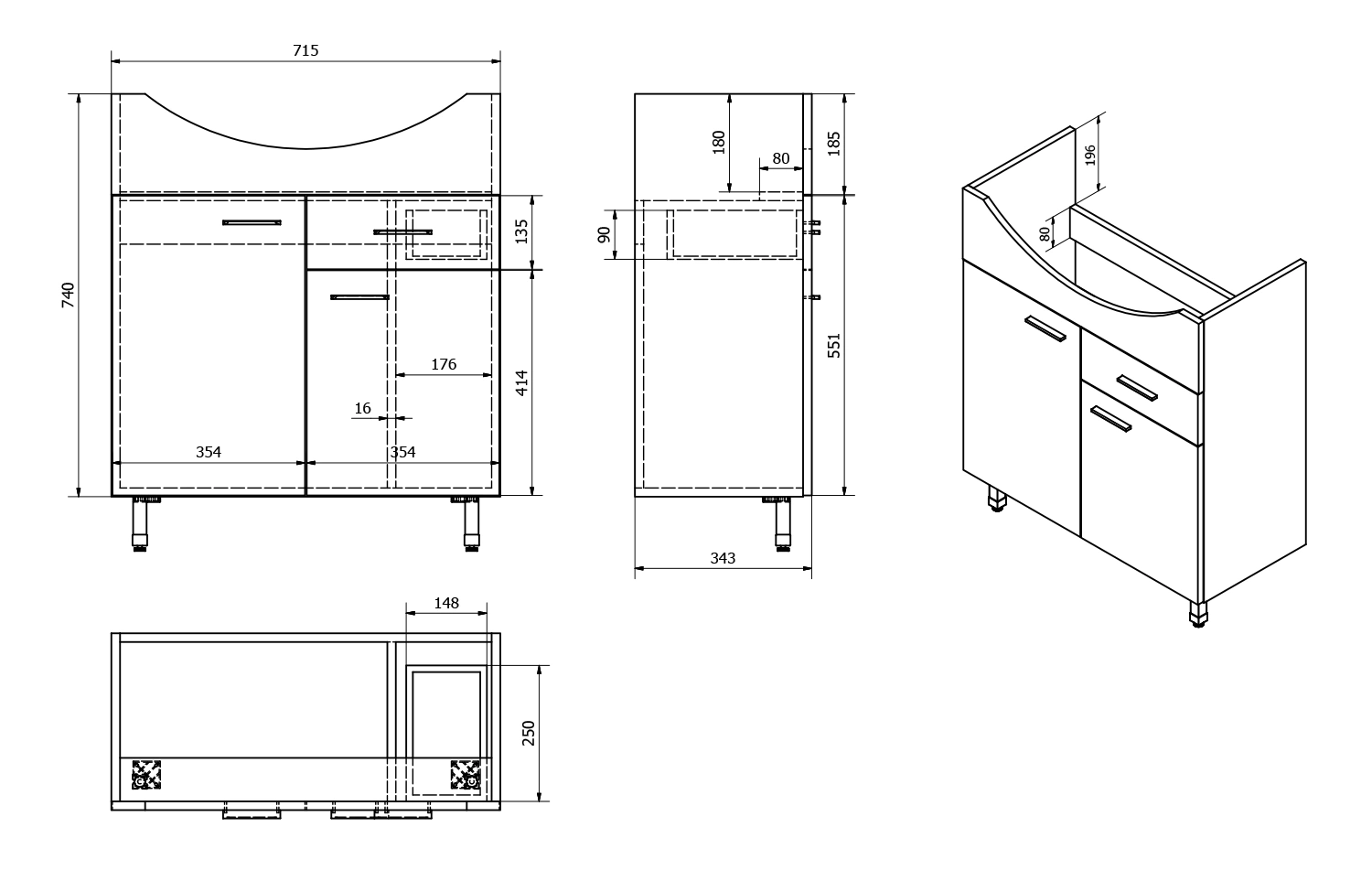 Nowoczesny design umywalek doskonale harmonizuje z prostymi krawędziami szafek, a płaskie uchwyty w chromowanym wykończeniu nadają im ponadczasowy styl. Szafki pod umywalkę można montować na zawiasach, a niektóre modele można dodatkowo wyposażyć w nóżki, co ułatwia instalację. Kolekcja dostępna jest w dwóch praktycznych wersjach wykończenia: biały połysk oraz jasny dąb platin.