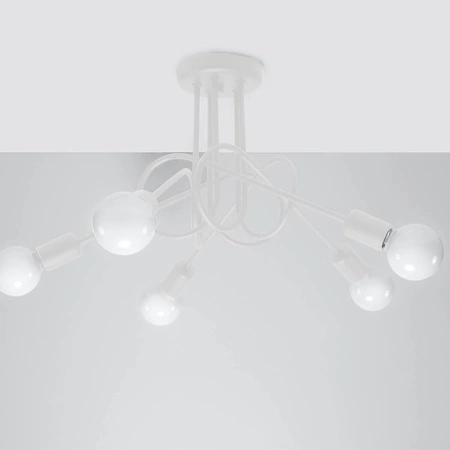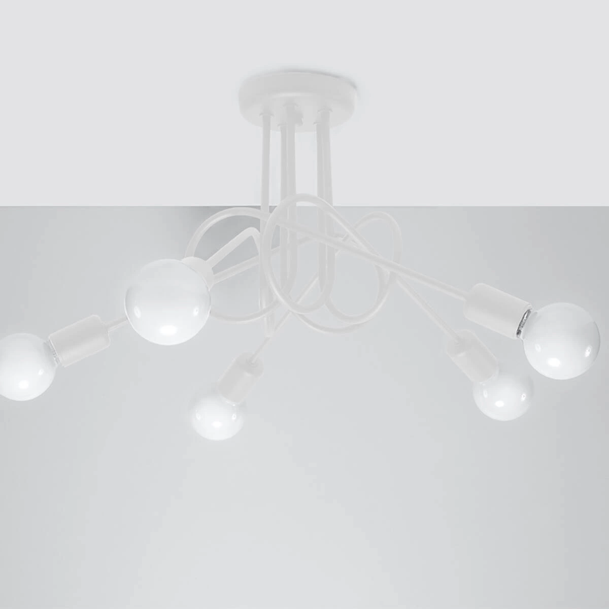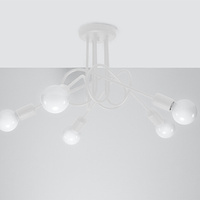 - Źródło światła: E27, 5x max 15W LED, ~230V, 50Hz, IP20, klasa ochronności IŹródło światła nie jest w kompelcie.Wymiary: 55/55/35 cmMateriał: stalKolor: biały