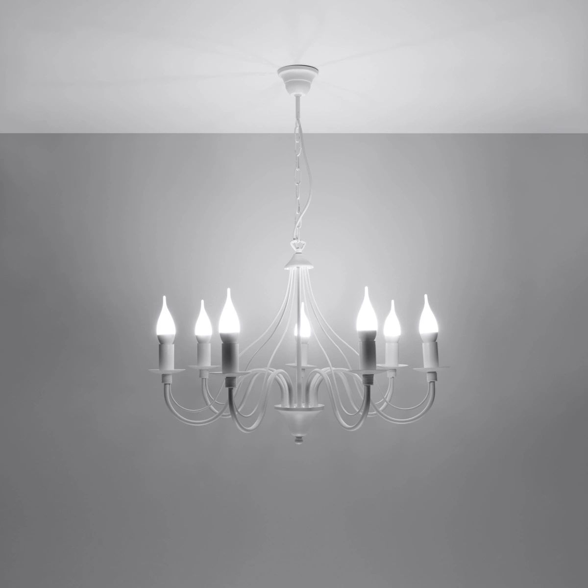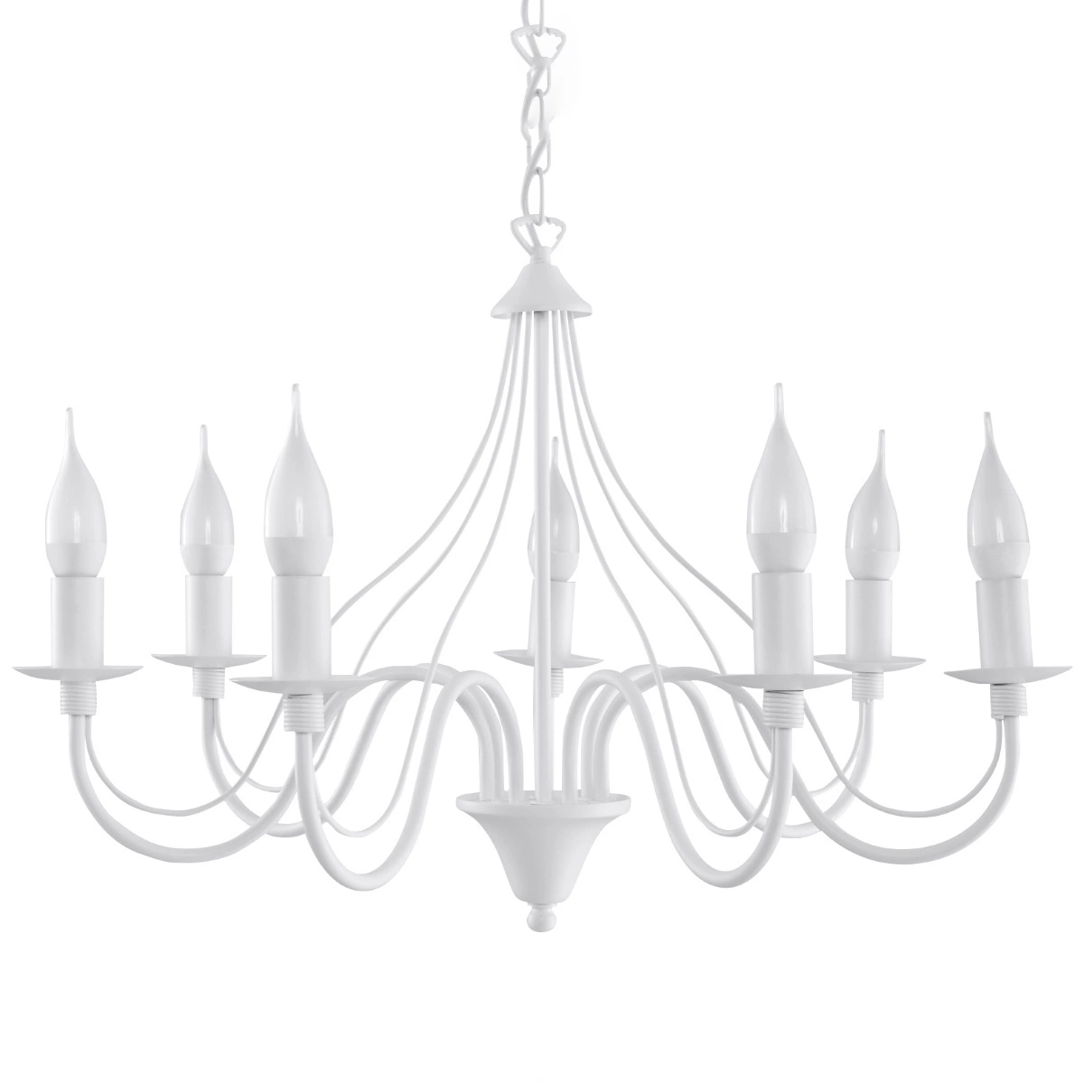 - Źródło światła: E14, 7x max 10 W LED, ~230V, 50Hz, IP20, klasa ochronności IŹródło światła nie jest w komplecie.Wymiary: 60/60/80 cmMateriał: stalKolor: biały