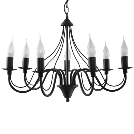 - Źródło światła: E14, 7x max 10 W LED, ~230V, 50Hz, IP20, klasa ochronności IŹródło światła nie jest w komplecie.Wymiary: 60/60/80 cmMateriał: stalKolor: czarny