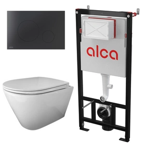 RAK Ceramics RESORT Miska WC podwiesz. Rimless 52x36 cm biały połysk ze stelażem i przyciskiem Przycisk THIN Czarny Mat Alcadrain